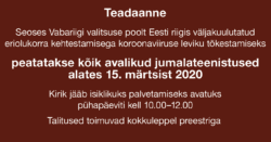 Teadaanne seoses eriolukorraga